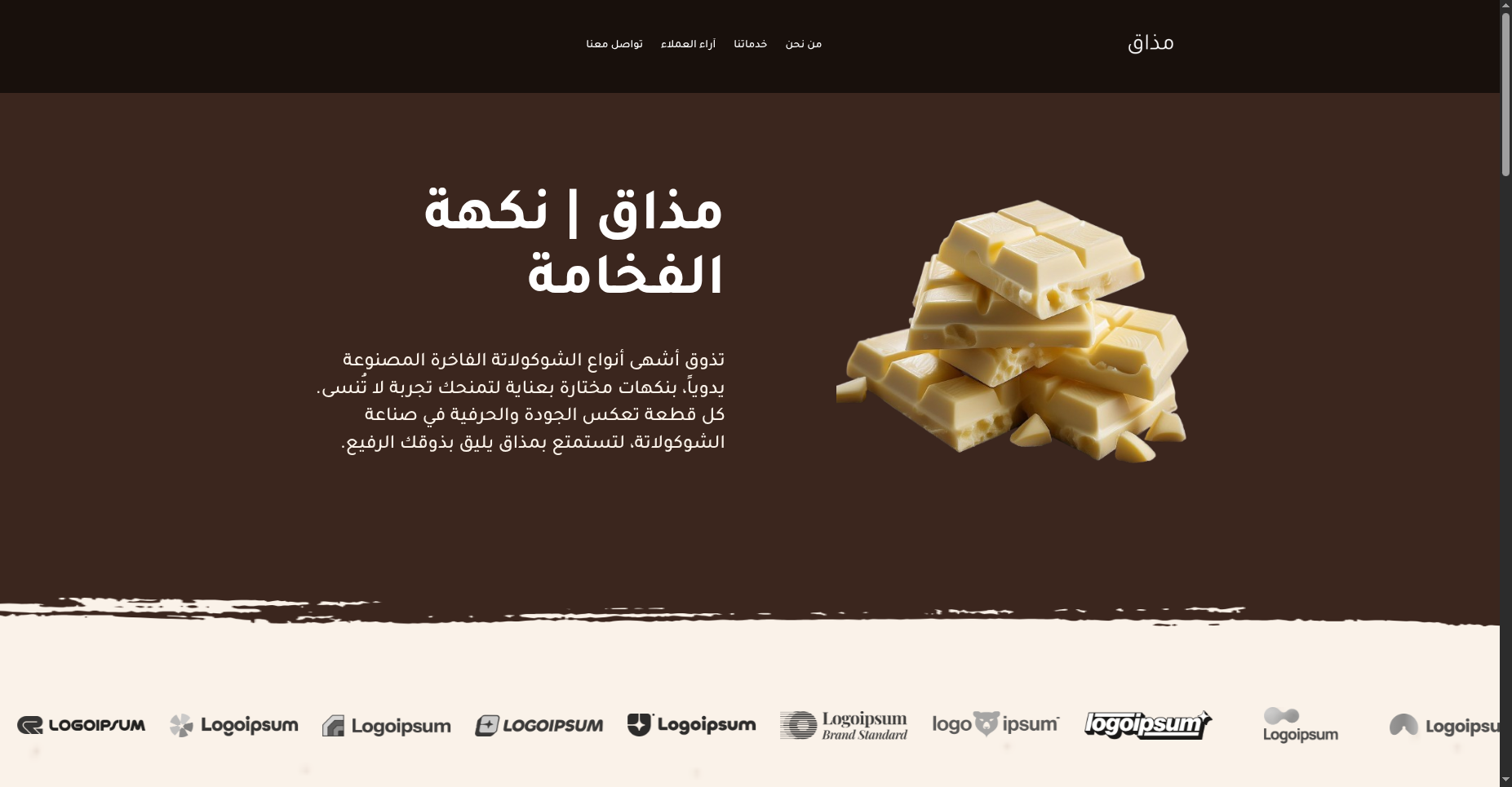 - مجال الصفحة: متجر شوكولاتة فاخرة، تقديم منتجات يدوية الصنع وتجارب تذوق فريدة.