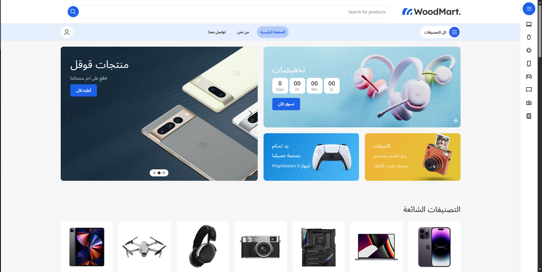 - عدد الصفحات/الأقسام الرئيسية: 4 صفحات رئيسية، بالإضافة إلى تصنيفات المنتجات.
